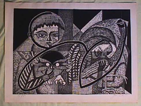 Titled: no title (Subject: Picaso style of boy, girl & owl)