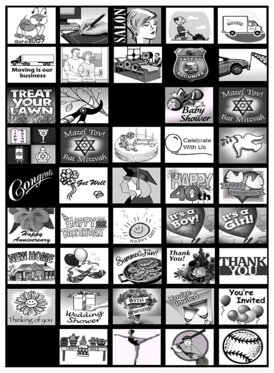 Page 4 Row 5: Congrats, Get Well, graduation, Happy 40th, Happy Anniversary
