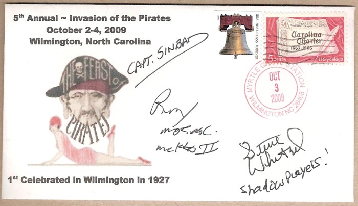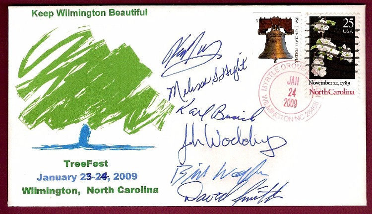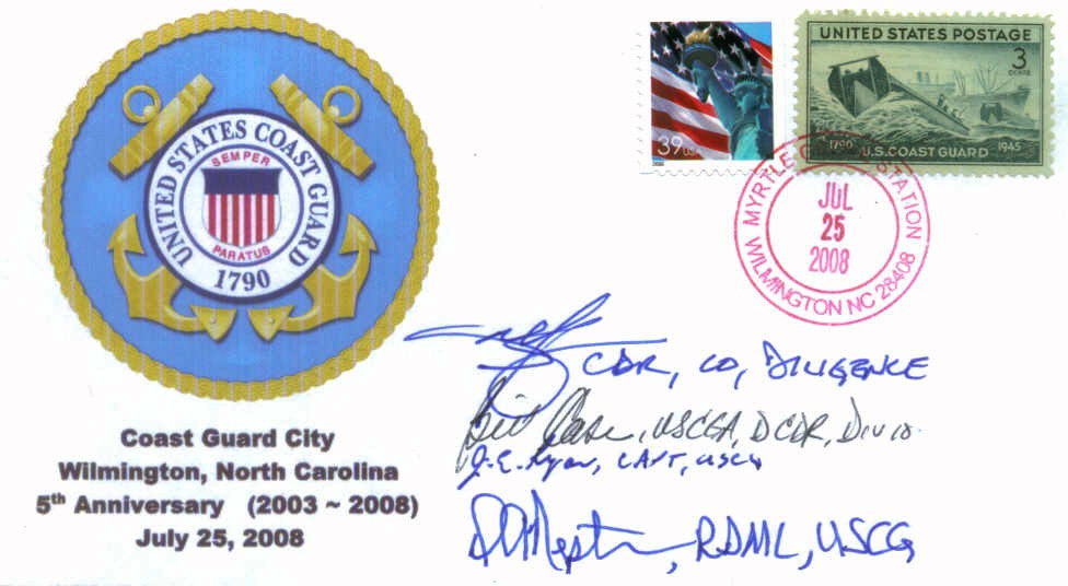 This cover is autographed by Coast Guard personnel who participated in "Coast Guard Day" as Wilmington