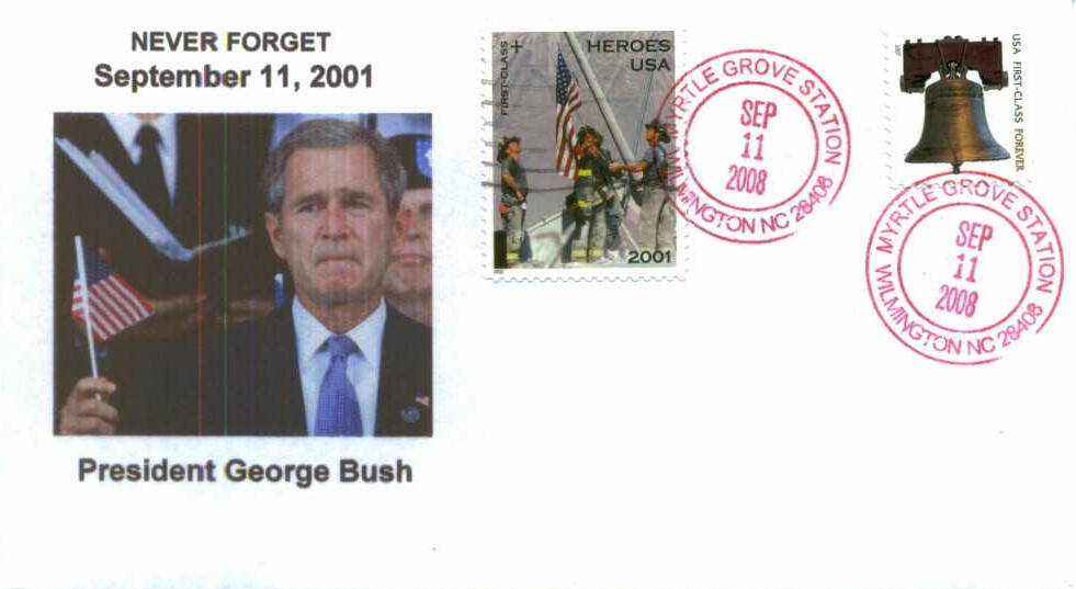 Americans and the world will "Never Forget." History: On September 11, 2001 there were a series of coordinated suicide attacks (aka 9/11) by al-Qaeda upon the United States. Nineteen Islamic terrorists (al-Qaeda) hijacked four US commercial passenger jet airliners. The hijackers intentionally crashed two of the airliners into the Twin Towers of the World Trade Center in New York City, crashed a third airliner into the Pentagon and a fourth crashed into a field in Shanksville PA before reaching targets in Washington DC. There were no survivors on any of the flights. 2,974 people died in these attacks and 24 were missing and presumed dead. The majority of casualties were civilians including nationals of over 90 different countries. On that fateful day President George Bush spoke to America. "Good evening. Today, our fellow citizens, our way of life, our very freedom came under attack in a series of deliberate and deadly terrorist acts. The victims were in airplanes or in their offices: secretaries, businessmen and women, military and federal workers, moms and dads, friends and neighbors. Thousands of lives were suddenly ended by evil, despicable acts of terror. The pictures of airplanes flying into buildings, fires burning, huge structures collapsing have filled us with disbelief, terrible sadness and a quiet, unyielding anger. These acts of mass murder were intended to frighten our nation into chaos and retreat. But they have failed. Our country is strong. A great people has been moved to defend a great nation. Terrorist attacks can shake the foundations of our biggest buildings, but they cannot touch the foundation of America. These acts shatter steel, but they cannot dent the steel of American resolve. America was targeted for attack because we're the brightest beacon for freedom and opportunity in the world. And no one will keep that light from shining. Today, our nation saw evil, the very worst of human nature, and we responded with the best of America, with the daring of our rescue workers, with the caring for strangers and neighbors who came to give blood and help in any way they could. Immediately following the first attack, I implemented our government's emergency response plans. Our military is powerful, and it's prepared. Our emergency teams are working in New York City and Washington, D.C., to help with local rescue efforts. Our first priority is to get help to those who have been injured and to take every precaution to protect our citizens at home and around the world from further attacks. The functions of our government continue without interruption. Federal agencies in Washington which had to be evacuated today are reopening for essential personnel tonight and will be open for business tomorrow. Our financial institutions remain strong, and the American economy will be open for business as well. The search is underway for those who are behind these evil acts. I've directed the full resources for our intelligence and law enforcement communities to find those responsible and bring them to justice. We will make no distinction between the terrorists who committed these acts and those who harbor them. I appreciate so very much the members of Congress who have joined me in strongly condemning these attacks. And on behalf of the American people, I thank the many world leaders who have called to offer their condolences and assistance. America and our friends and allies join with all those who want peace and security in the world and we stand together to win the war against terrorism. Tonight I ask for your prayers for all those who grieve, for the children whose worlds have been shattered, for all whose sense of safety and security has been threatened. And I pray they will be comforted by a power greater than any of us spoken through the ages in Psalm 23: "Even though I walk through the valley of the shadow of death, I fear no evil for you are with me." This is a day when all Americans from every walk of life unite in our resolve for justice and peace. America has stood down enemies before, and we will do so this time. None of us will ever forget this day, yet we go forward to defend freedom and all that is good and just in our world. Thank you. Good night and God bless America." On September 11, 2008 (7th Anniversary) people in the United States in its cities and in its towns remember these terrorism attacks and those who lost their lives on 9/11. They are thankful that there have been no further attacks on US soil. There was a ceremony at Wilmington's Cape Fear Community College, a global unity interfaith service held at the Unity Christ Church of Wilmington NC, a memorial at Brunswick Community College, a flag display at UNCW's Randall Library and a motorcade by the Red Knights International Firefighters. Patriotism in America is seen in Lee Greenwood's song," I'm Proud To Be An American (aka God Bless the USA)." And I had to start again, with just my children and my wife. I'd thank my lucky stars, to be livin here today. ‘ Cause the flag still stands for freedom, and they can't take that away. And I'm proud to be an American, where at least I know I'm free. And I wont forget the men who died, who gave that right to me. And I gladly stand up, next to you and defend her still today. ‘ Cause there ain't no doubt I love this land, God bless the USA. From the lakes of Minnesota, to the hills of Tennessee. Across the plains of Texas, From sea to shining sea. From Detroit down to Houston, and New York to L.A. Well there's pride in every American heart, and its time we stand and say. That I'm proud to be an American, where at least I know I'm free. And I wont forget the men who died, who gave that right to me. And I gladly stand up, next to you and defend her still today. ‘ Cause there ain't no doubt I love this land, God bless the USA. And I'm proud to be and American, where at least I know I'm free. And I wont forget the men who died, who gave that right to me. And I gladly stan