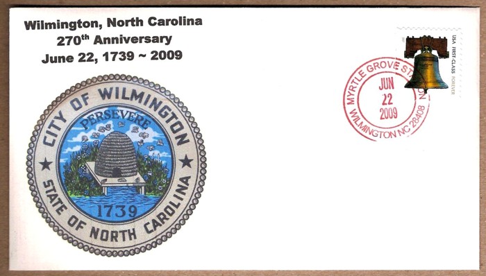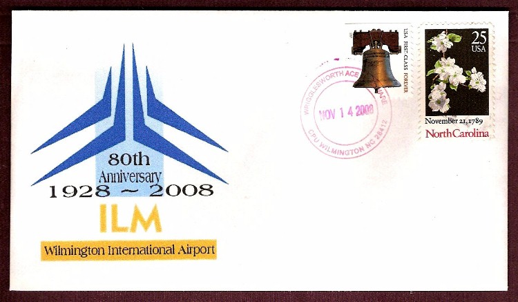 A cover cancelled on July 25, 2008 in Wilmington NC