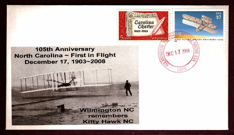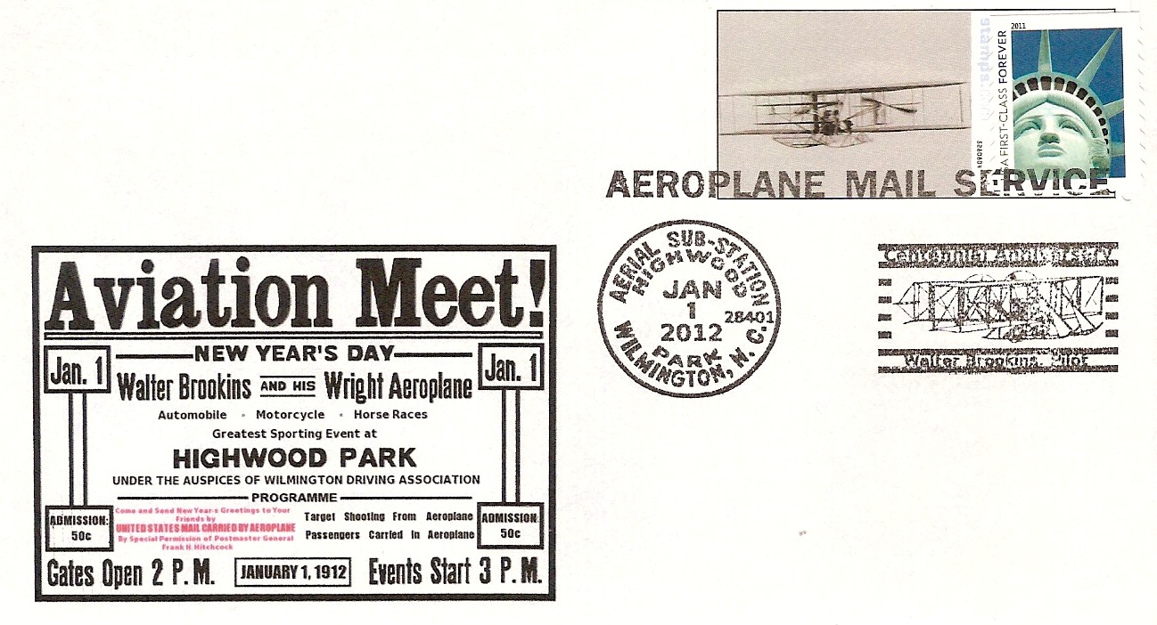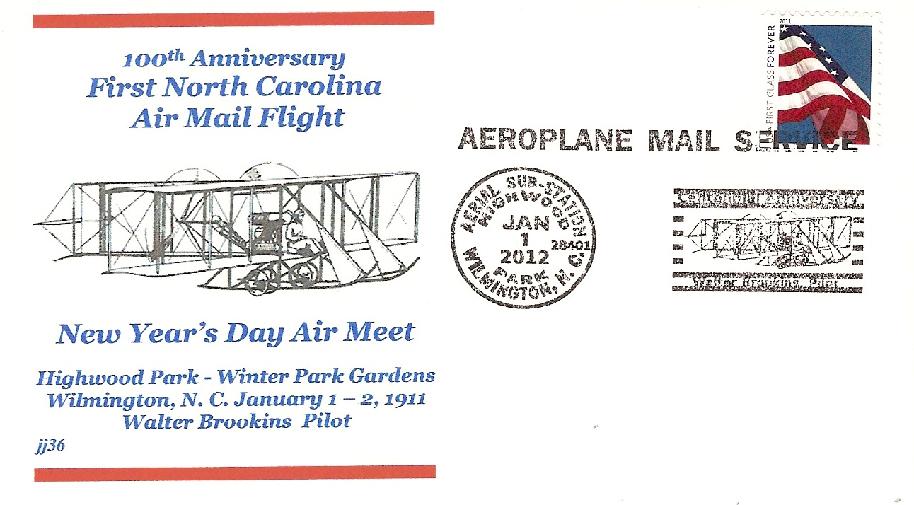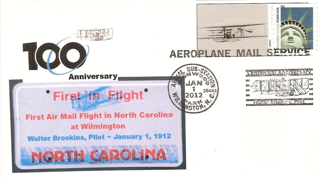 NC commemorating the 100th Anniversary of the first air mail flight in North Carolina flown at Wilmington by pilot, Walter Brookins.