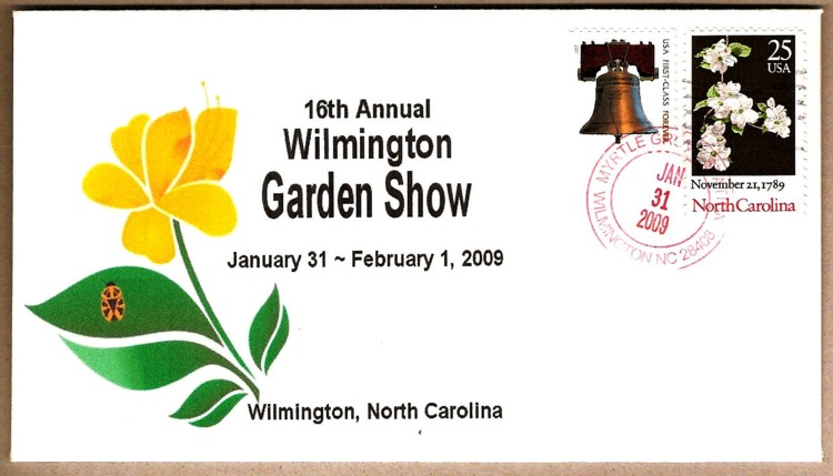 unique in that it was sent "stampless" through the mails. History: Wilmington has been the home of the annual springtime "North Carolina Azalea Festival" which first began in 1948. The Festival is a celebration of Wilmington's exceptional azalea gardens showcasing the brilliant floral displays with which southeastern North Carolina greets the spring. Additionally, the Festival celebrates the rich history, artwork and culture of Wilmington. It is usually celebrated over five days of entertainment that now includes a parade, street fair, circus, concerts, pageantry and all that is Southern. The Festival is substantially sponsored by four major organizations including GE-Wilmington, Neuwirth Chrysler-Jeep, Progress Energy and the Wachovia Bank. The 72nd Annual "North Carolina Azalea Festival" will be held April 3-7, 2019 in the greater Wilmington area. |