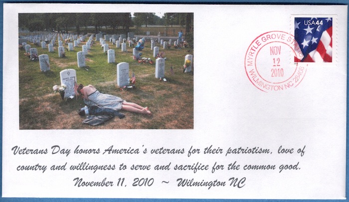 4392 | A cover cancelled on November 12, 2010 in Wilmington NC commemorating Veterans Day. The Post Office is closed on November 11th. History: Armistice Day is the anniversary of the symbolic end of WW-I on November 11, 1918. It commemorates the armistice signed between the Allies and Germany at Compiègne France, for the cessation of hostilities on the Western Front, which took effect at eleven o'clock in the morning - the "eleventh hour of the eleventh day of the eleventh month." The date was a national holiday in many of the former allied nations to allow people to commemorate those members of the armed forces who were killed during war. After WW-II, it was changed to Veterans Day in the United States and to Remembrance Day in the British Commonwealth of Nations. Armistice Day is an official holiday in France. It is also an official holiday in Belgium, known also as the day of peace in the Flanders Fields. |