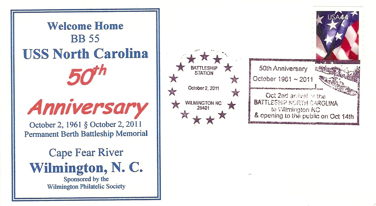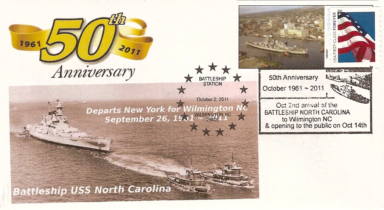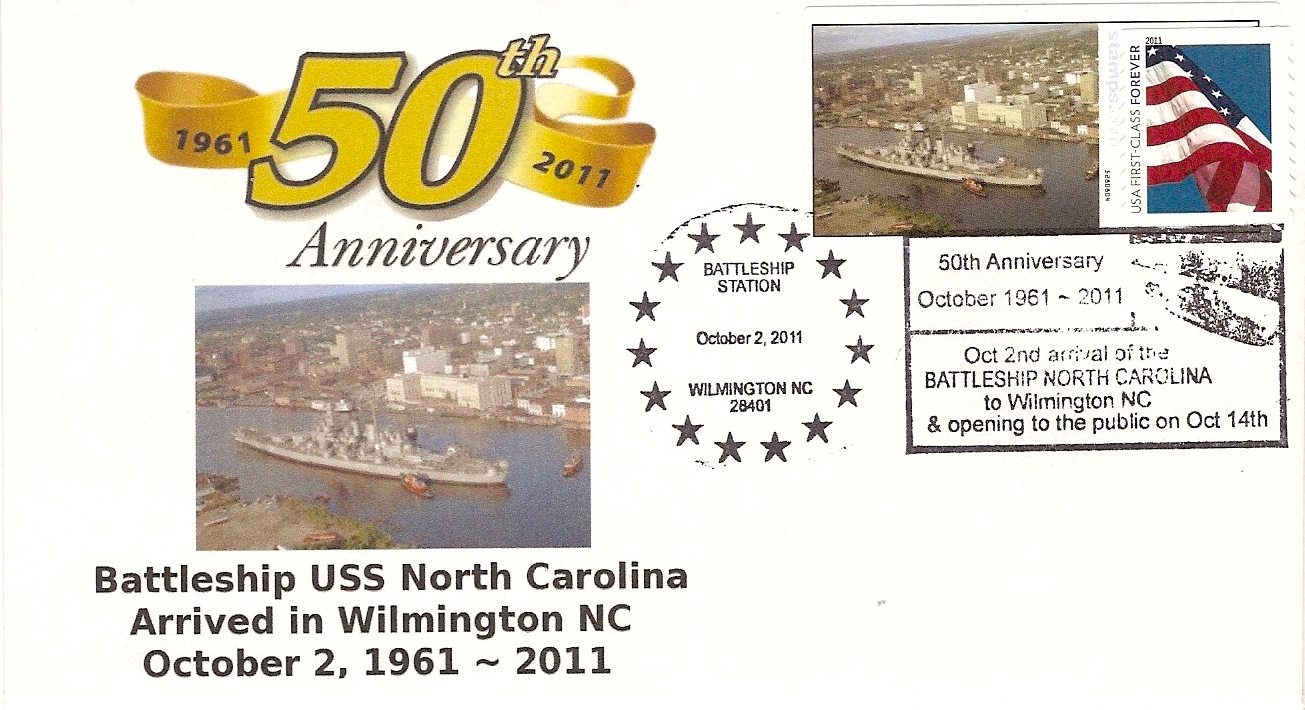 NC commemorating the 50th Anniversary of the arrival of the USS North Carolina in Wilmington NC.