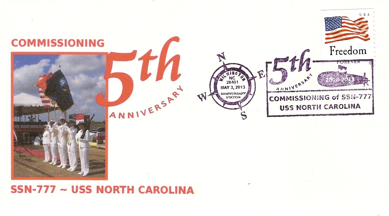 NC commemorating the 5th Anniversary of the Wilmington commissioning of the USS North Carolina (SSN-777).
