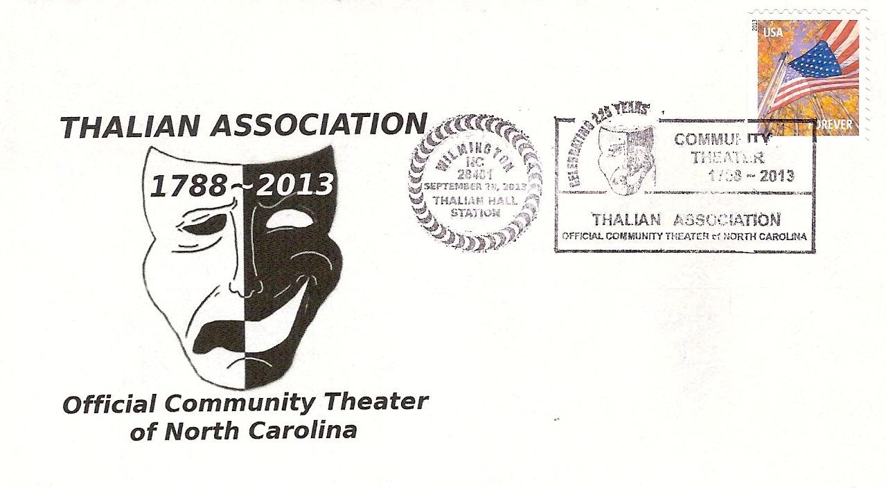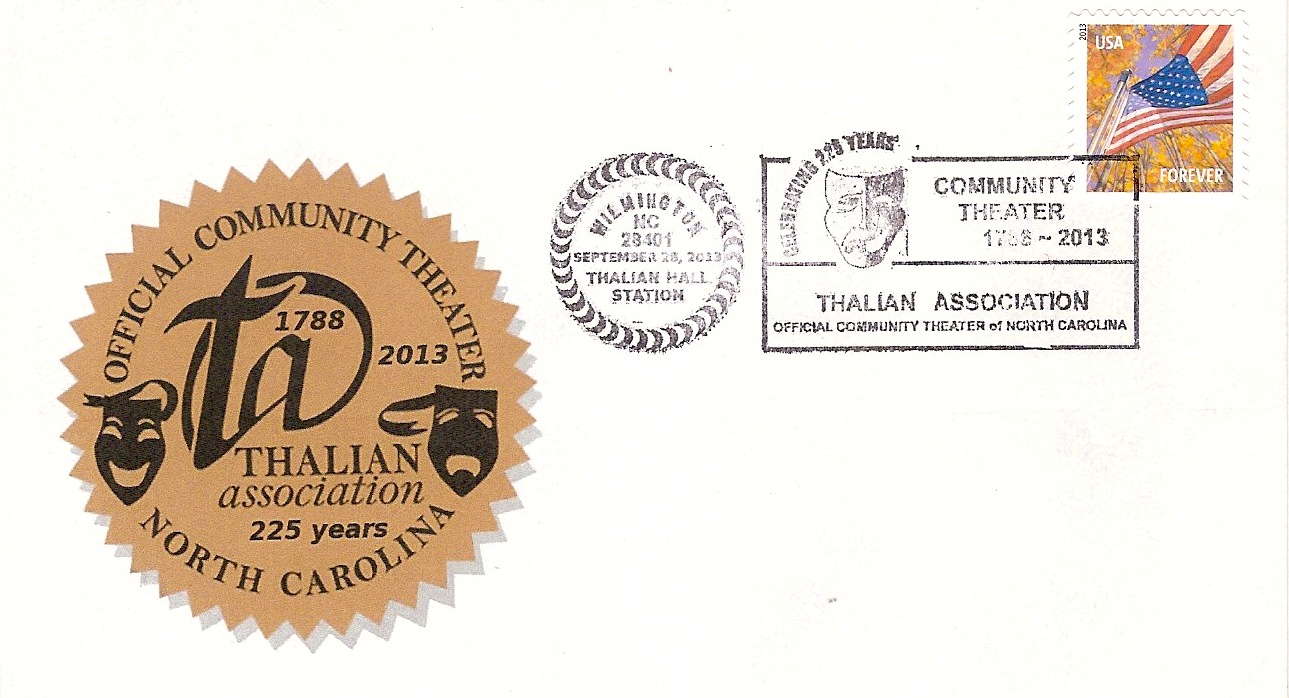 NC commemorating the 225th Anniversary (1788~2013) of the Thalian Association (Offical Community Theater of North Carolina).