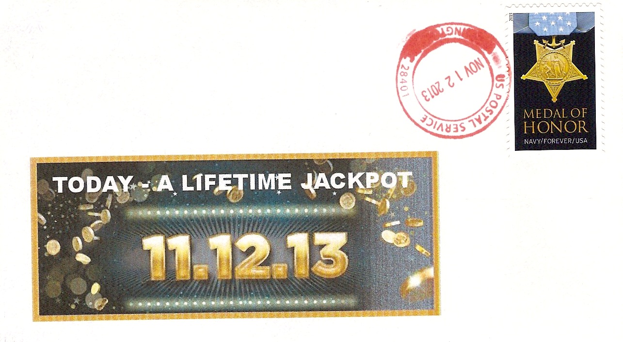 History: The date 11/12/13 (November 12, 2013) has three consecutive numbers making it arithmetically appealing. Humans like seeing patterns in the randomness of life as it gives them an illusion of control over the passage of time. Moving ahead with extended arithmetical detail at 2:15PM & 16 seconds on November 11, 2013, the month/day/year/hour/minute/second would be: 11/12/13/14:15-16. Moving back to 10 minutes after 9AM on the same day, the hour/minute/month/day/year would be 9/10/11/12/13. According to an annual survey from David's Bridal (Mayfare Towne Center, Wilmington NC) more than 3,000 weddings are said to have taken place in the US on November 12, 2013 compared with 371 weddings on the same day in 2012. Humans seem to be drawn to arithmetically appealing "lucky numbers," the gambling expectation of which will bring them good fortune. After 11/12/13 there will be another numerical anomaly sequential date on December 13, 2014 (12/13/14). Then on January 2, 2034, it will be 1/2/34. Ninety years from now, there will be another month/day/year consecutive number anomaly on January 2, 2103 (1/2/3). |