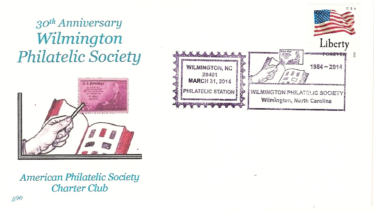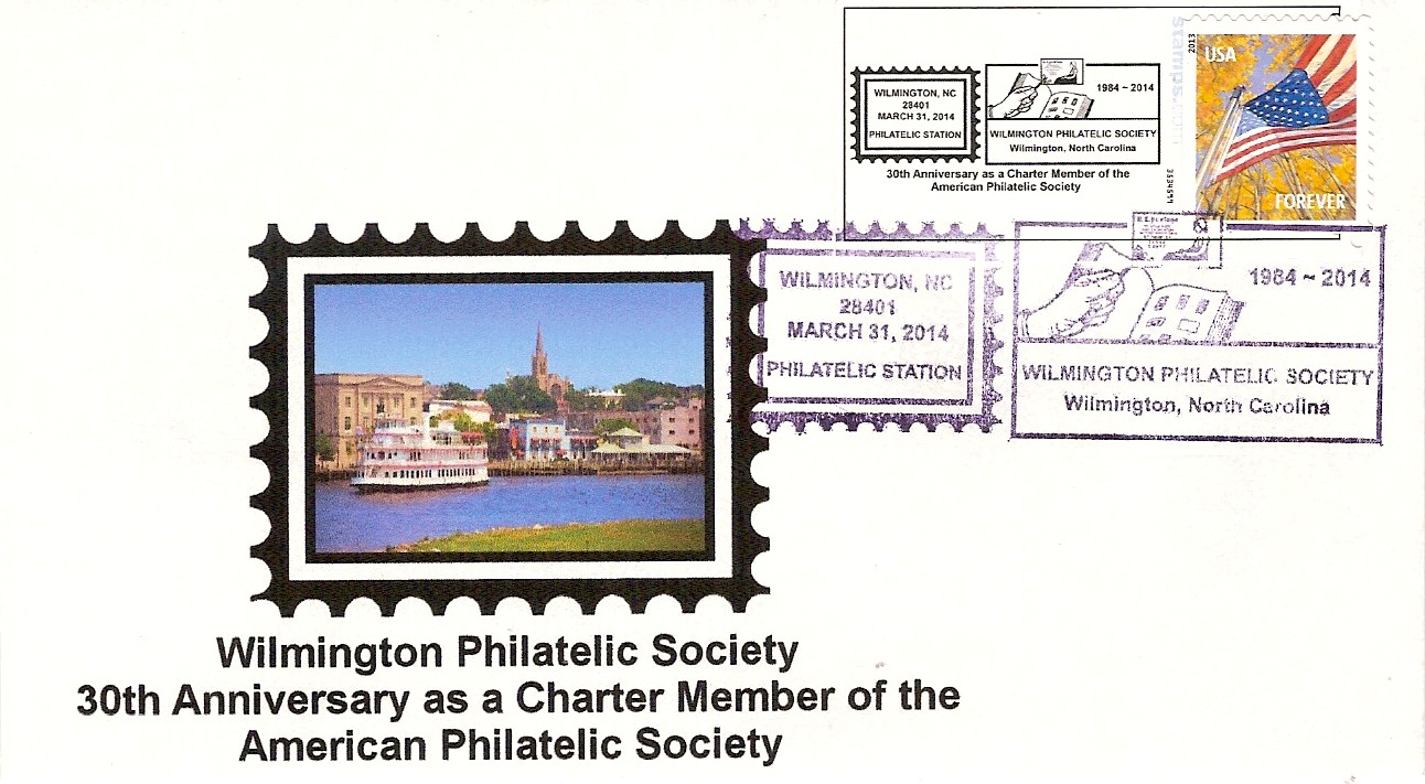 NC commemorating the 30th Anniversary of the Wilmington Philatelic Society as a Charter Member of the American Philatelic Society (aka America's Stamp Club).